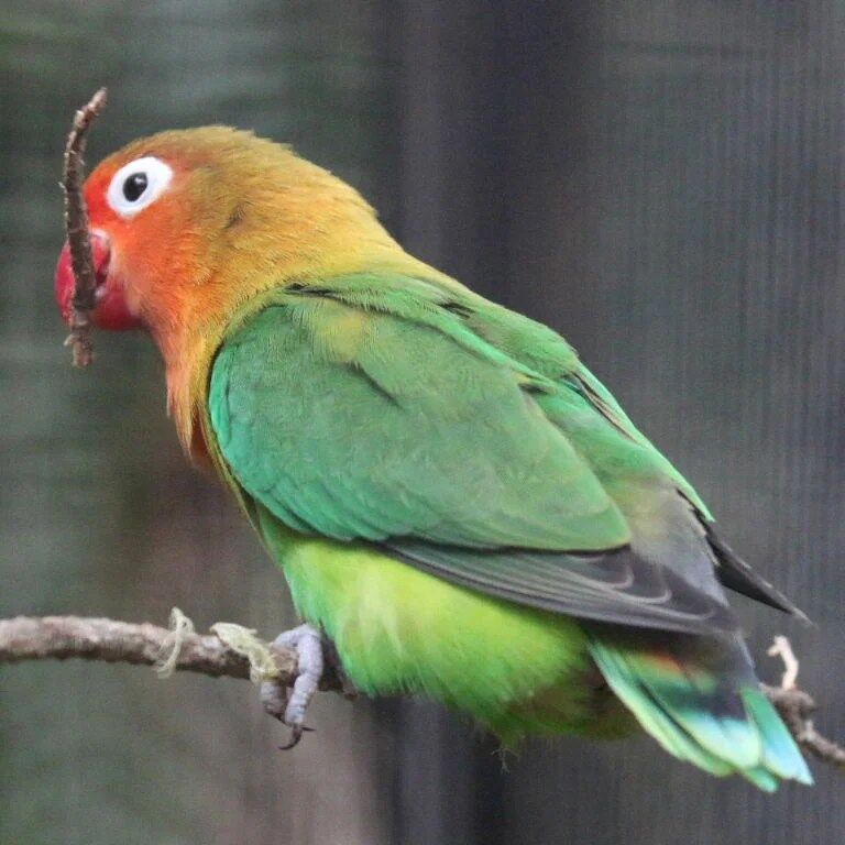 Typical of all the lovebirds, Fischer’s Lovebird is very social and loves companionship. Their natural behavior is to live closely with a companion so are often kept with another lovebird. Though they make a very fine and affectionate pet when hand-raised, they will need a lot of attention if kept singly. Most are kept in pairs to satisfy their considerable need for constant companionship, mutual preening, and socialization.