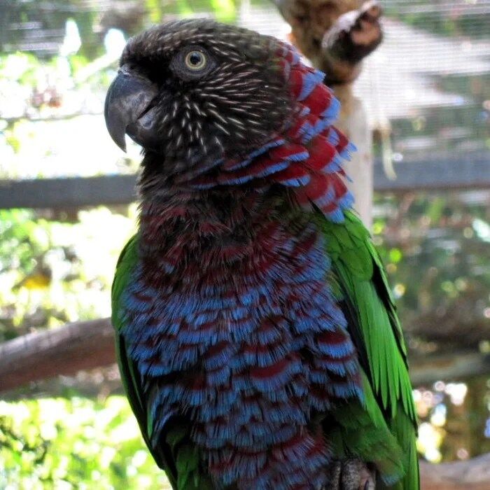 Being very friendly birds, Hawk-Headed parrots will follow you around the home the entire day if allowed. They love attention, they will also thoroughly enjoy being held close to the body and petted on the top of the head and under the wings. They will actually fall asleep laying on or close to you. And although they are quite loyal and attached to their main human companion, they will frequently play with any individual.