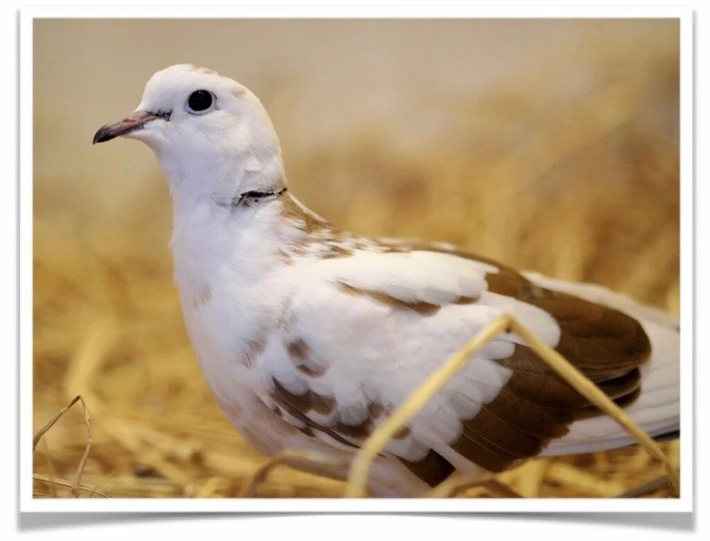 Pied Ringneck Doves (Streptopelia Risoria) make good pets and the most popular type of dove to own as a pet. The body or skin of a pied dove birds is always white and splashed with another hue variation which could be a shade of orange, beige or other color. The bill is light to light with dark tipped to black, eye color is dark and the neck ring can be full, broken or nonexistent. Buy Pied Doves Online